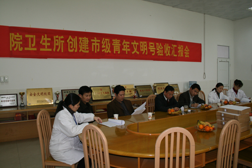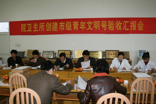 考核小组首先听取了我院后勤集团卫生所所长王萃同志关于青年文明号争创情况的总结汇报,后勤集团和院团委负责人先后介绍了学院卫生所创建一年以来的工作情况。考核组详细察看了创建工作的档案资料,并具体询问了有关问题,对卫生所的创建工作给予了充分的肯定,同时提出了一些建设性的建议。