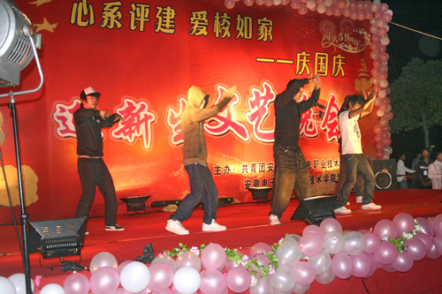 9月25日晚,由学院团委、学生会主办的“心系评建、爱校如家”庆国庆迎新生文艺晚会在教学楼广场隆重举行,数千师生观看了演出,精彩的演出不时博得师生们热烈的掌声。演出内容丰富多彩,有歌曲、街舞、黄梅戏、相声、武术表演等。院党委副书记、纪委书记韩光辉应邀出席晚会,并发表了热情洋溢的讲话,对新同学的加入表示热烈的欢迎,对他们寄予了厚望。