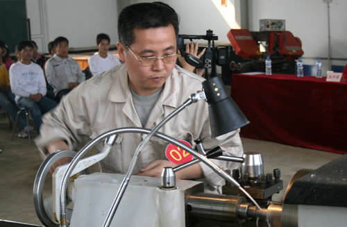 当天上午,经过4轮紧张的角逐,5号选手卞涛最终技高一筹力压其他5位选手,获得了大众评委的认可,荣获“超级车工”称号,张永生院长为其颁发了奖品和获奖证书。
