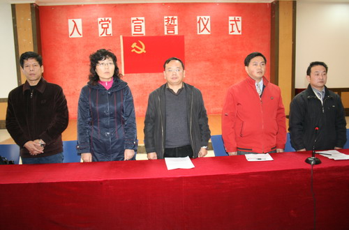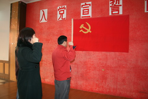 宣誓仪式在庄严的国际歌声中拉开帷幕。在主持人的带领下,30余名新党员面对鲜红的党旗,神色凝重地举起右手郑重宣誓,正式成为一名光荣的中国共产党党员,在他们的人生中又掀开了崭新的一页。
