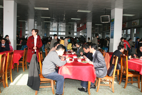 此次评估中,深入食堂与学生一道就餐,全方位感受学院膳食,也同样是评估的一项内容。结束了当天上午的行程,8日中午12时,专家组一行在院领导的陪同下步入学院生活服务中心,仔细察看食堂的饭菜和就餐环境,并随机与个别同学交谈,询问饭菜价格。当看到食堂内干净整洁、工作人员着装规范、饭菜品种琳琅满目价格合理、同学们都比较满意时,专家们露出了赞许的笑容。