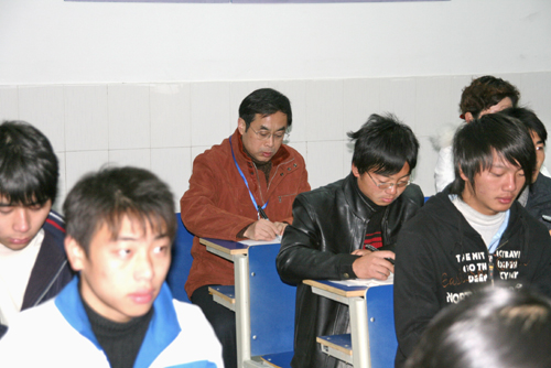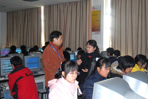 12月9日上午,评估专家组组长陈啸教授在学院5406教室听取软件学院朱士明老师为测试081班讲授的《C语言程序设计》课程。