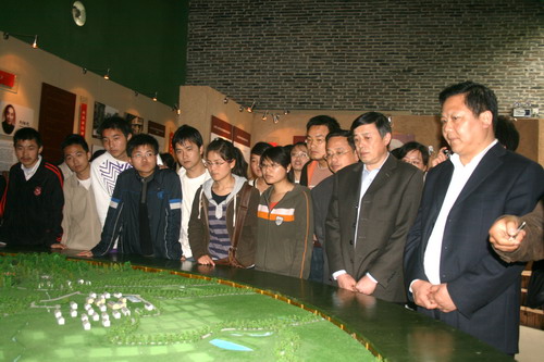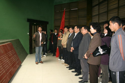揭牌仪式后,出席仪式的全体同志及学生代表在解说员的引导下,兴致勃勃地参观了纪念馆展厅、伟人故居及司令部会议室、大食堂等。