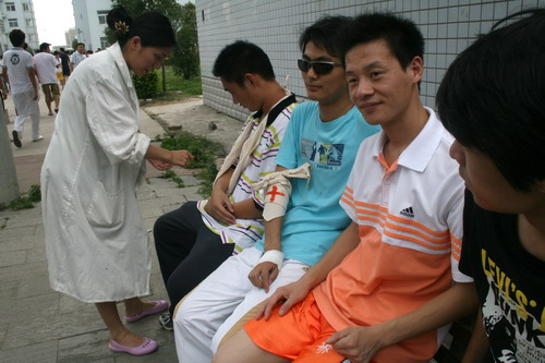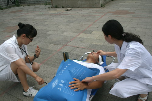 “呜——”随着警报声响起,正在上课的学生在老师的指挥下从教室鱼贯而出,沿“逃生”路线快速有序撤离到安全地带。医务工作者忙不迭地将“伤员”抬上担架,输氧、量血压、包扎伤口……这是发生在6月18日下午的一幕,学院成功举行应急疏散演习,院领导张永生、韩光辉、马莉莉现场观摩并指挥演习,全院数千师生参加了演习。