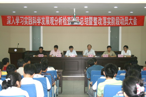 按照学院深入学习实践科学发展观活动实施方案的要求,7月7日下午,学院召开学习实践活动分析检查阶段总结暨整改落实阶段动员大会,总结第二阶段的学习实践情况,对转入第三阶段的工作进行动员和部署。省属高校学习实践活动第二指导检查组副组长方达及其成员杨广琦、何松涛莅临大会,院党政领导胡秋林、张永生、韩光辉、马莉莉、袁益强等出席大会。全体教职工党员和群众代表参加转段动员大会。