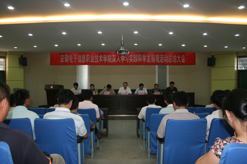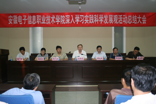 院深入学习实践科学发展观领导小组组长、党委书记胡秋林在大会上作报告,他的报告分五个部分,第一部分回顾了学习实践活动的主要做法,主要从加强组织领导,注重思想发动;统筹谋划全局,突出活动重点;注重正面教育,深入学习调研;贯彻群众路线,广泛征求意见;抓好整改落实,突出实践特色等方面进行了总结。第二部分为学习实践活动的主要成效,主要表现在:提高了认识,明确了思路,坚定了创建示范高职院校的信心;突出重点、关注热点,努力构建和谐校园;完善体制机制,进一步提升服务全局的能力和水平;拓宽了视野,更好地发挥高校服务经济社会的作用。
