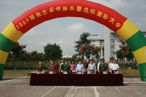 经过11天紧张有序的训练,学院2009级新生军训圆满落下帷幕,9月26日下午,举行了盛大的阅兵仪式暨总结表彰大会,院党政领导胡秋林、张永生、韩光辉、马莉莉、袁益强等和武警蚌埠支队相关负责同志,以及学院相关部门负责同志出席大会,副院长袁益强主持大会。