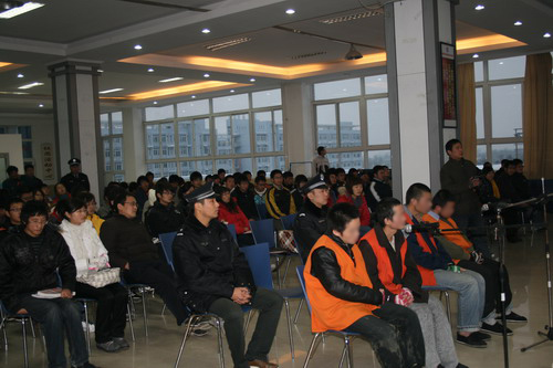 当天的庭审现场,尽管天气非常寒冷,但旁听审理的数百名师生鸦雀无声,脸上写满了严肃,在两个多小时的庭审过程中,很少有人走动,大家屏气凝神听完了审判的全过程。当看到四名大学生被告衣着单薄、冻得瑟瑟发抖,为找工作而误入传销组织,戴着锃亮的手铐接受审判时,不少同学眼里噙满了泪花。