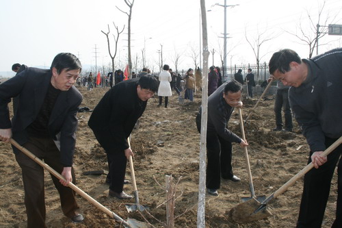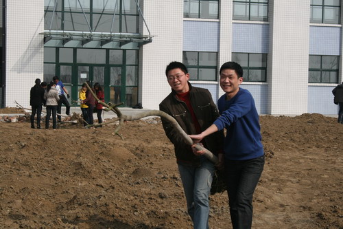 3月12日,植树节,当天下午,学院风雨操场西侧的空地上彩旗招展,人声鼎沸,大家挥汗如雨进行植树造林活动,为学院的美化绿化做出自己的贡献。院领导胡秋林、张永生、韩光辉、袁益强等和数百师生员工全程参与植树活动,共同栽下高杆女贞树数百株。这也标志着今年学院美化绿化校园活动拉开帷幕。