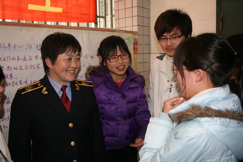 3月25日下午,全国劳动模范余瑞青应邀来到学院,与同学们面对面交流,作了一场主题为“空间有限,服务无限”的报告,介绍了她工作、生活中“帮助别人快乐自己”的点点滴滴。院党委副书记、纪委书记韩光辉出席交流会并讲话。