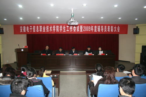 3月31日下午,学院学生工作会议暨2009年度辅导员表彰大会在学术报告厅隆重举行,大会对上一年度的学生工作进行了总结回顾,对今年的工作进行了部署,对优秀辅导员进行了表彰。院领导胡秋林、张永生、韩光辉、马莉莉、袁益强出席大会,各职能部门负责人、各院系领导、专兼职辅导员、团总支书记、从事学生工作的全体人员参加大会。院党委副书记、纪委书记韩光辉主持会议。
