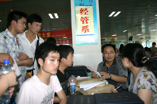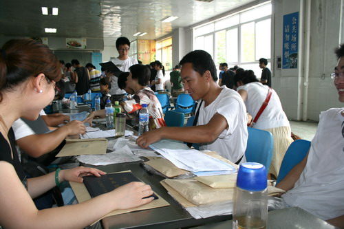 当天上午,笔者在食堂一楼大厅看到,偌大的餐厅挤满了人,由于天气炎热,不少人的衣服都湿透了,尤其是各部门工作人员被同学们围在中间,更是热得透不过气,但他们总是做到有问必答,热情服务。一位朱姓同学告诉笔者,他目前已经在南方某城市就业,这次专程来学校办理毕业证,他认为学校能够以人为本,为同学们着想,提供“一站式”服务,在很短的时间内就能办结很多手续,省去了许多不必要的麻烦。“真的很感谢母校,在即将离开母校的日子里,看到老师们还这样挥汗如雨为我们服务,真的很感动!”