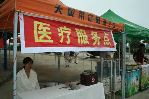 专设的医疗服务点和免费供水区,服务细致入微。