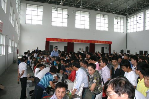 工作人员忙不迭地在为新同学办理入学手续。