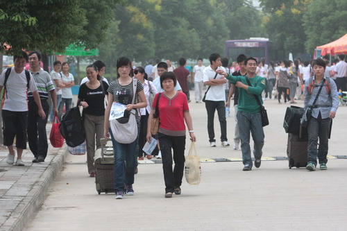 在人群中,也有不少是“单枪匹马”一人来报到的。