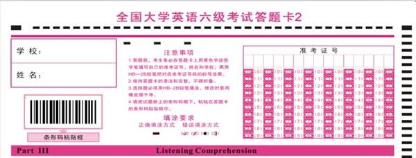 为进一步加强CET考务管理工作,加大反舞弊措施力度,严肃考风考纪,本次 CET4和CET6在全国推行“多题多卷”模式,即在同一考场内使用多套试卷,通过条形码区别不同试卷类型。试卷随机混装于试卷袋中,答题卡格式一样。