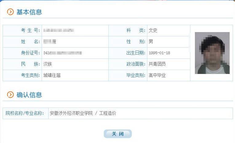3. 退出后重新登录gkbm.ahzsks.cn,可以查询到自己确认的院校:
