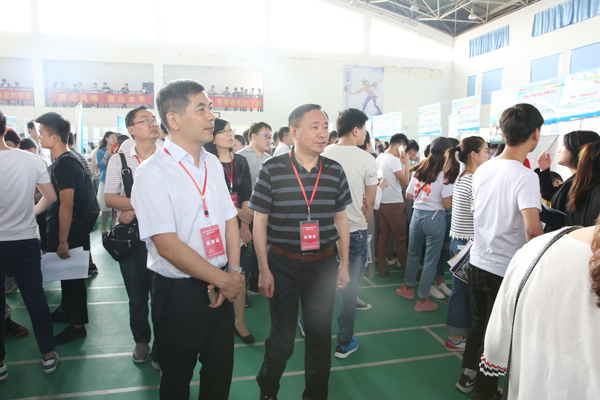 本网讯 为服务“制造强省、科教大省、技工大省”建设,促进毕业生高质量就业,5月20日,2017年安徽省应用技术类高校毕业生就业市场洽谈会在学院隆重举行。省教育厅大中专毕业生就业指导中心副主任袁江林,学院党委书记石象斌,党委副书记、院长王国武,党委委员、副院长马莉莉,党委委员、副院长姚卿佐,党委委员、人事处处长辛颖,省教育厅大中专毕业生就业指导中心市场信息部部长崔松革、发展培训部部长王素苗等到会指导,并详细了解企业需求和学生应聘情况。