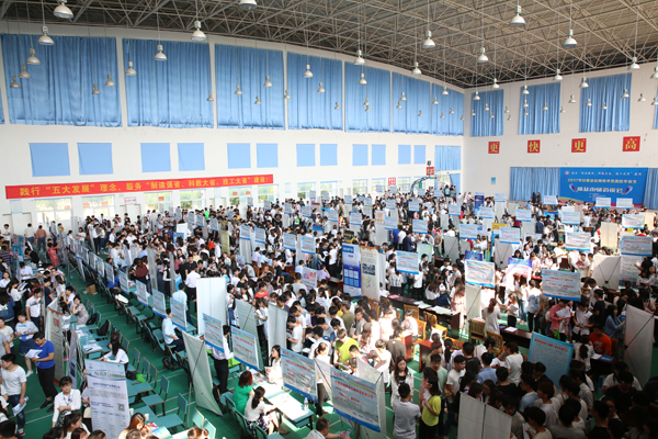 洽谈会现场人潮涌动,气氛热烈,秩序井然。此次洽谈会是由省教育厅和省经信委主办,由省教育厅高校学生处、省教育厅大中专毕业生就业指导中心和我院联合承办,吸引了206家企业参会,共提供就业岗位近600个、岗位需求人数近6000个。其中不乏北上广、江浙、合肥等地的优秀企业前来参展,涉及先进制造、信息工程、技术创新、金融服务、商务贸易、房地产营销和连锁餐饮等多个行业,主要招聘操作能手、技术人员以及业务人员,兼有文秘、客服、销售等方面的岗位需求。