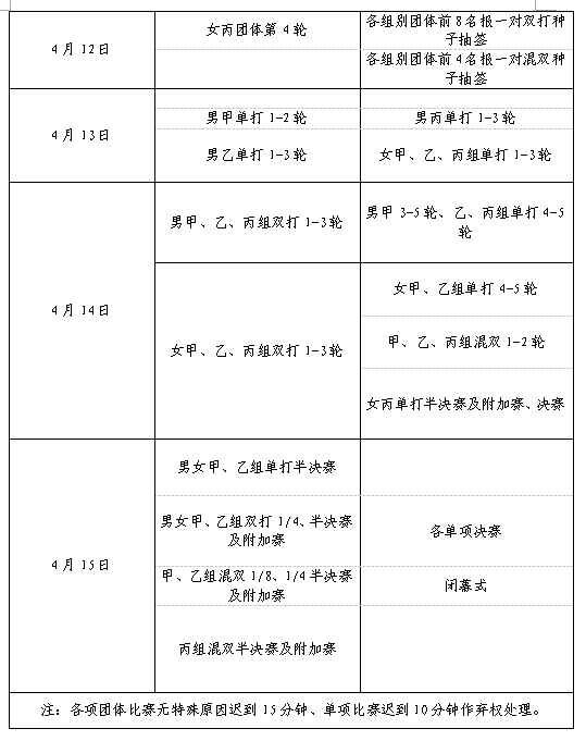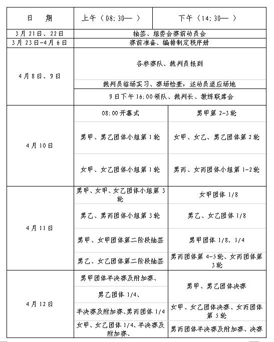安徽省第十四届运动会高校部乒乓球比赛活动日程安排