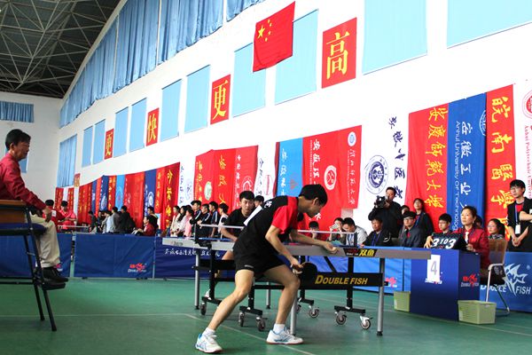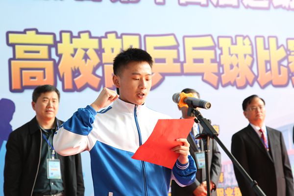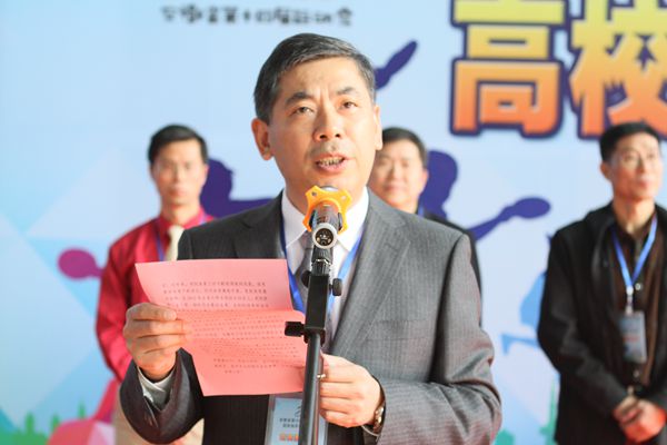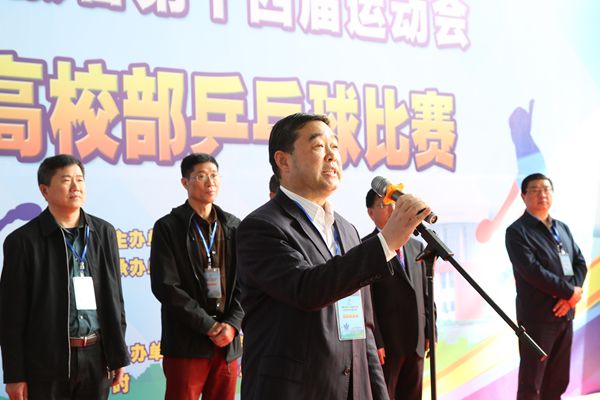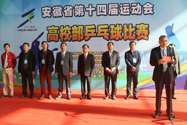 邹传明宣布安徽省第十四届运动会高校部乒乓球比赛开赛。