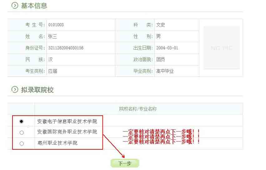特别提醒:高职院校分类考试录取确认只有在规定时间内,在规定网站上操作方为有效。请各位考生一定要妥善保管自己的考生号、身份证号等个人信息,切勿泄露给其他人,更不要委托他人代替自己确认。一旦确认了录取院校,是不能修改的!!!
