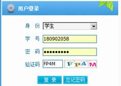 登录教务系统首页,在网页左上方选择登录身份(学生),输入个人账号、初始密码(初始密码和学号一样)和验证码,点击“登录”。