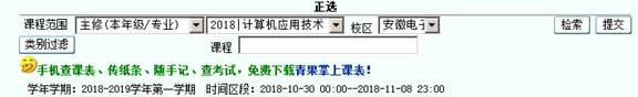3、选择课程范围(主修(本年级/专业)),点击“检索”按键;