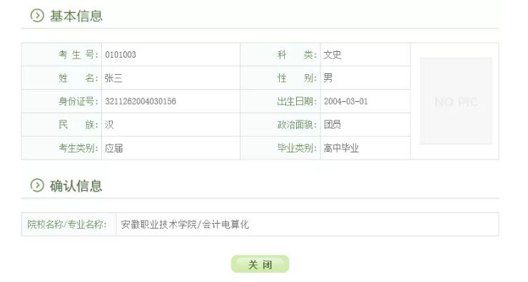 三、退出后重新登录gkbm.ahzsks.cn,可以查询到自己确认的院校: