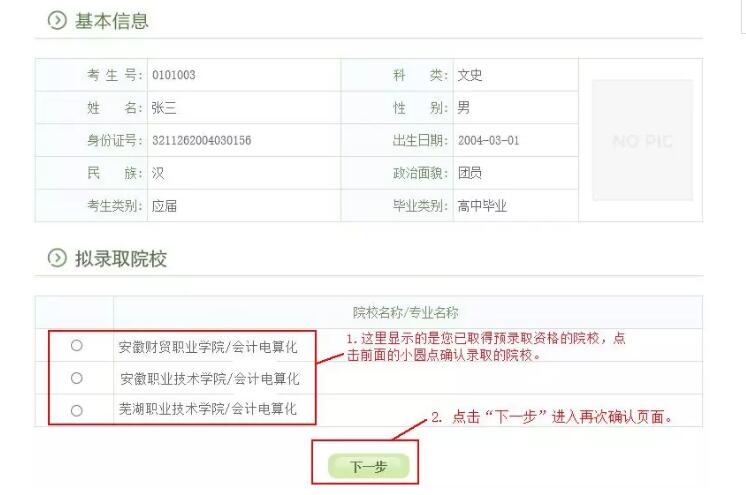 根据省教育厅的要求,为扩大考生选择权,考生可选报最多3所院校,一名考生可取得多所院校预录取资格。考生只有在规定时间内选择一所院校确认录取。录取院校一经确认,任何人不得更改。已被预录取但未网上确认的考生将视为放弃录取资格。