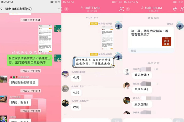 宣传教育是抗击疫情最好的“疫苗”。姚琦郡是学院机电工程系一名党员专职辅导员,她现在每天的主要工作就是利用QQ、微信和今日校园APP,了解学生健康状况和人员流动信息,向学生和家长科普疫情防控知识,宣传学院疫情防控安排,做到人人知晓、不漏一人。“机电185班全体学生健康状况正常,都在居家隔离”,经过逐一核实,姚琦郡向系里汇报班级当天情况。让她感到最欣慰的,就是所带的近四百名学生都能安心宅家、身体健康。
