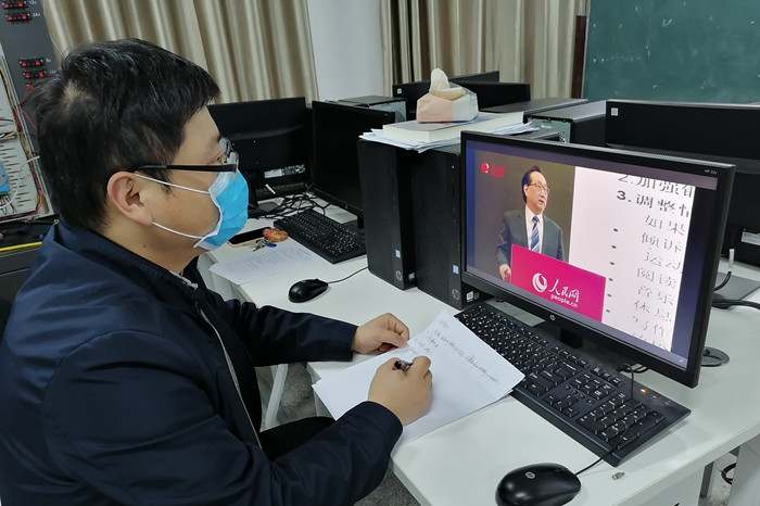 本网讯 4月23日,由省委宣传部、省委教育工委、省教育厅与人民网联合举办的“同上一堂战‘疫’思政大课”安徽专场 在“云端”开讲,学院高度重视,统筹安排,思政部、教务处、学生处和各系(院)通过多种途径组织6000余名学生在线收看,学院党委副书记、纪委书记韩光辉,相关系(院)部负责同志、全体专兼职思政课教师和辅导员也在线收看学习。