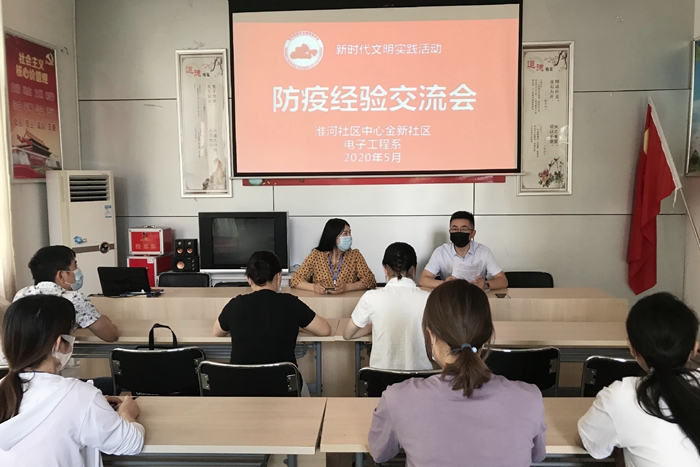 本网讯 为做好返校复学的充分准备,进一步做细做实学生返校复学工作,5月21日下午,电子工程系党总支副书记徐欢带队赴金新社区开展疫情防控学习交流,金新社区党总支书记邵二燕、副书记郑政及部分工作人员参加了活动。