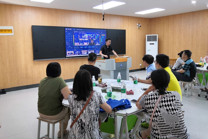 培训会上,科大讯飞专业技术人员对智慧教室的课堂互动工具、智慧教学平台、直播教学、录播教学、分组教学等模块进行了详细演示。据技术人员现场介绍,在智慧金课教室中,师生可以展开多种形式的互动教学,可一键录制互动教学全过程,生成的课程视频将自动上传至教学资源平台,同时能实现授课板书电子化保持,满足教师教学复盘,学生回顾学习和校本资源累积需要。在智慧研讨教室中,组合式桌椅的设计,打破传统教室布局,便于开展小组讨论,提升互动分享的效果,同时能实现智能设备无缝对接,为构建高效快捷的教学模式提供重要支持。