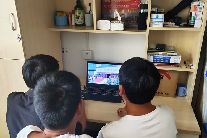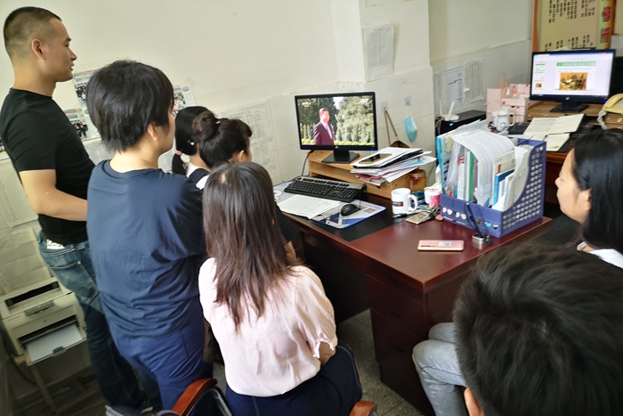 学院党政领导石象斌、王国武、韩光辉、马莉莉、姚卿佐、辛颖、陈再文在实验楼1115会议室与办公室、组织人事处、学生处、总务处、工会等部门教职工一起集中收看了直播,各系(院)部也组织师生在党员活动室、办公室、学生宿舍收听收看现场直播。