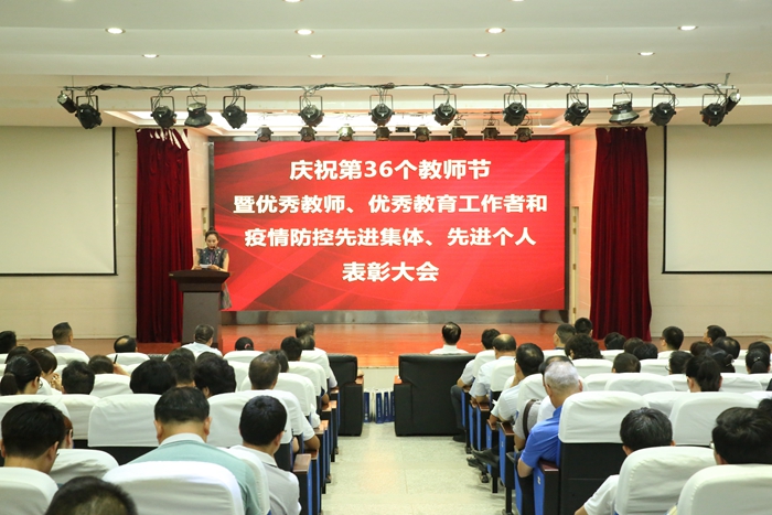 本网讯 立德树人奋进担当,教育脱贫托举希望。9月9日下午,学院庆祝第36个教师节暨优秀教师、优秀教育工作者和疫情防控先进集体、先进个人表彰大会在信息中心学术报告厅隆重举行,学院党政领导石象斌、王国武、韩光辉、马莉莉、姚卿佐、辛颖、陈再文出席大会。中国声谷运营单位党支部书记郭铁,蚌埠凯盛工程技术有限公司党支部书记、总经理叶坤,安徽陆零壹信息科技有限公司董事长刘国欣,安徽昊方机电股份有限公司副总经理高健晖,安徽宝信信息科技有限公司总经理李广垒等应邀出席活动,全体教职工参加大会。