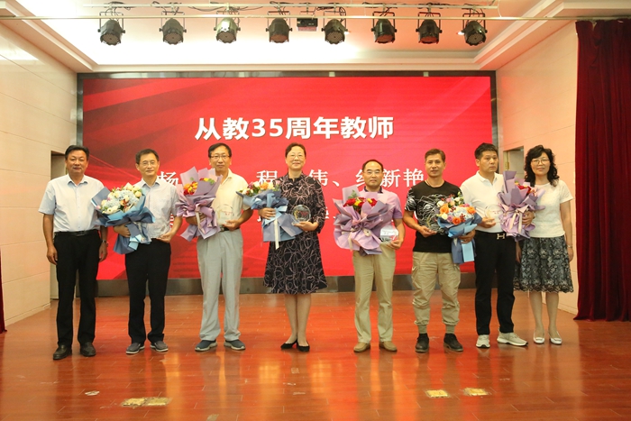 会上,学院党政领导和校企合作企业领导,先后为从教35周年的教师和2019-2020学年度光荣退休的教师代表颁发纪念牌和鲜花,为受到表彰的先进集体和先进个人颁发荣誉证书和鲜花,并合影留念。(办公室 王浩 审核 聂小明)