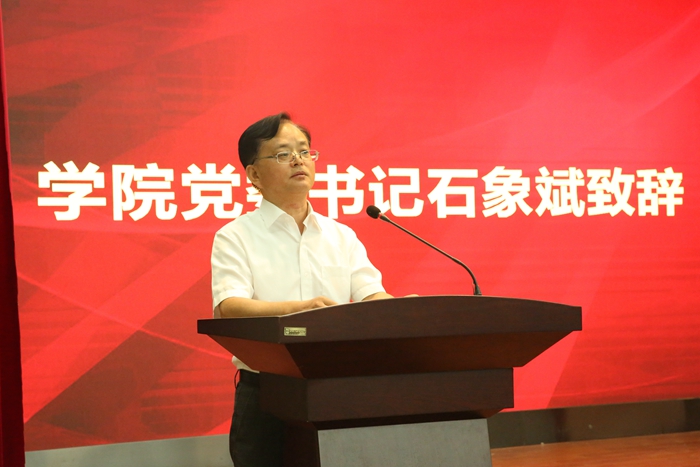 石象斌就不忘立德树人初心,牢记为党育人、为国育才使命,向全体教师提出了四点要求:要始终把“‘四有’好老师”作为第一追求。要发自内心去热爱和敬畏教育,要把教师当作传播知识、传播思想、传播真理的事业,当作塑造灵魂、塑造生命、塑造新人的艺术,要用爱心、知识、智慧点亮学生心灵,要以理想信念为基,用远大的志向、纯粹的心灵、高尚的节操引领学生前行;要始终把“关爱学生”作为第一责任。真正把自己的温暖和情感,倾注到学生身上,用欣赏增强学生信心,用信任树立学生自尊,努力让每一个学生都健康成长,让每一个学生都享受成功的喜悦;要始终把“师德师风”作为第一标准。让有信仰的人讲信仰,传道者自己首先要明道,自觉坚持教书和育人相统一,坚持言传和身教相统一,坚持潜心问道和关注社会相统一,坚持学术自由和学术规范的统一,将师德规范转化为稳定的内在信念和行为品质,在细微处见师德,在日常中守师风;要始终把“学习”作为第一要务,勤于积累知识,树立终身学习理念,升华专业知识、提升专业素养,善于传播知识,把握教育规律,不断更新教学理念、创新教学方法、提高教学艺术,提升育人本领和教学效果。