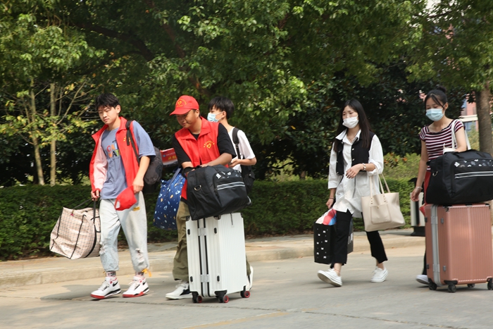 因疫情防控需要,陪伴新生来校报到的家长不能进入校园。在迎新现场,学生志愿者不停地穿梭在校园各条道路上,热情细心地引导新生完成报到流程,帮助新生搬运行李,并积极介绍校园环境和生活经验。整个迎新工作井然有序,让新生们感受到了学院浓浓的人文关怀。(办公室 王浩 审核 聂小明)