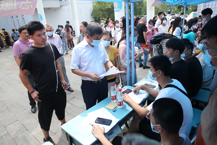 本网讯 飒爽秋风,梦想起航,又是一年迎新时。9月12日,学院迎来2020级分类考试录取新生和五年制新生。学院党委副书记、院长王国武,党委委员、副院长马莉莉,党委委员、副院长姚卿佐深入迎新现场,指导迎新工作,看望慰问新生和迎新工作人员。
