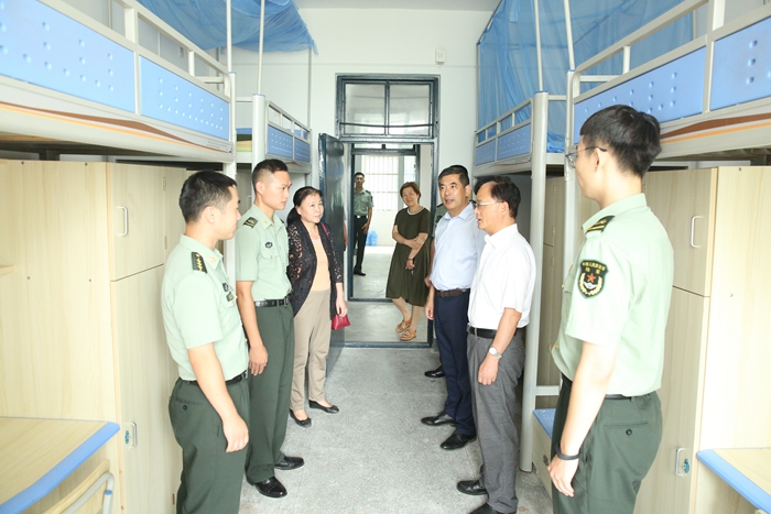 本网讯 9月15日,学院党委书记石象斌,党委副书记、院长王国武,党委委员、副院长马莉莉在武装部、总务处、学生处负责人陪同下前往宿舍,看望慰问学院2020级新生军训承训教官。