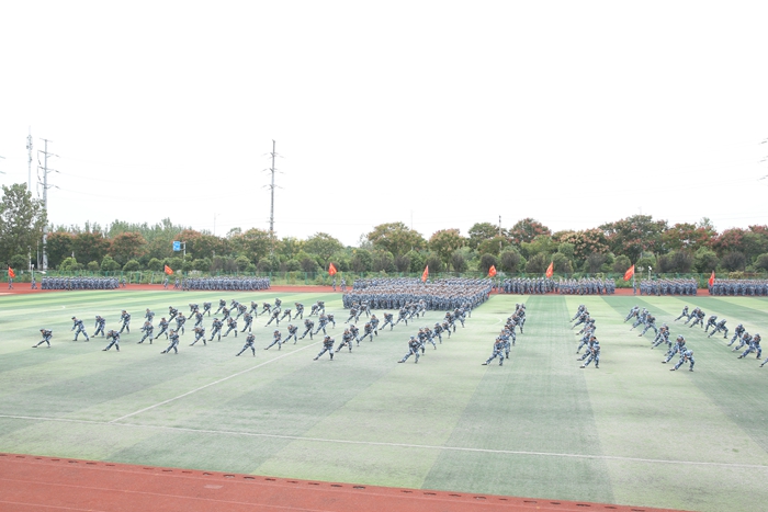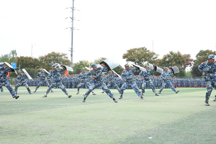 展军训成果,绽青春风采,学院2020级新生会聚田径场,下午3时许,总结表彰大会在庄严的国歌声中拉开帷幕。迎着高高飘扬的国旗,踏着响彻四方的军歌,2020级全体新生开始分列式表演,目光坚毅、步伐整齐,正步摆臂、铿锵有力,各方阵依次走过主席台;军体拳、盾牌操、快乐魔方等项目表演,或势如破竹、刚劲有力,或动作协调、步调一致,尽显青春风采。