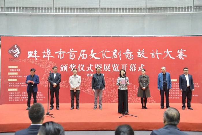 本网讯 10月29日下午,蚌埠市首届文化创意设计大赛颁奖仪式暨展览开幕式在市博物馆一楼大厅举行。蚌埠市委常委、宣传部长谢兵主持仪式。学院副院长姚卿佐,中国社会科学院学部委员、考古研究所所长陈星灿,安徽省文物局文物保护处处长杨益峰,安徽博物院院长胡敏,中国(海南)南海博物馆馆长辛礼学,蚌埠市文化和旅游局局长袁政,安徽丰原集团副总经理陈中碧等出席活动。