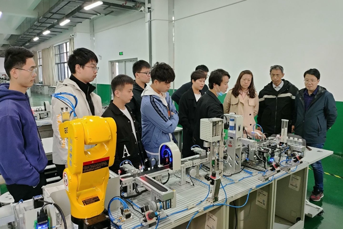 智能制造实训室是我院地方高水平建设机电一体化技术专业群重点建设实训室,该实训室以软硬件相结合,增加了50个虚拟工位及2条实际产线,有效地改善了机电一体化技术专业群的实践教学条件。