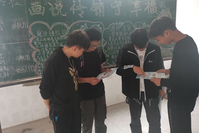 11月12日,系青年志愿者利用课间进行反传销、反诈骗宣传活动,通过案例故事,向同学们揭露传销活动的违法犯罪本质、惯用手段和严重危害,普及禁止传销、打击传销的法律法规,取得良好效果。