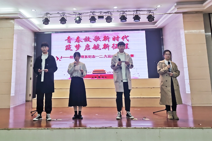 本网讯 铭记峥嵘岁月,传承红色经典。12月9日下午,由经济管理系主办的纪念“一二•九”运动85周年大合唱比赛在学术报告厅举行,此次活动以“青春放歌新时代,筑梦启航新征程”为主题。经济管理系300余名师学生共同观看了比赛。