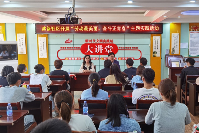 5月12日下午,系团总支组织50余名青马培训班学员走进蚌埠市建新社区,共同聆听社区党支部书记、主任于红同志为同学们上的一堂“劳动思政课”。