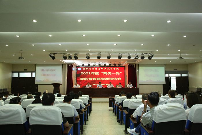 石象斌代表校党委向受表彰的先进集体和优秀个人表示祝贺,向全校各级党组织、党务工作者和全体党员致以节日的问候,并根据中央、省委及省经济和信息化厅党组开展党史学习教育的部署要求,按照我校主题教育工作安排,作党史专题党课报告。