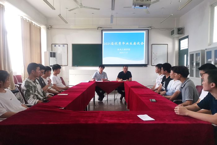 本网讯 7月11日上午,机电工程学院召开2021届优秀毕业生代表座谈会。机电工程学院负责人郝志廷、党总支副书记赵世同出席座谈会。来自机电工程学院各专业的毕业生代表参加座谈会,座谈会由赵世同主持。