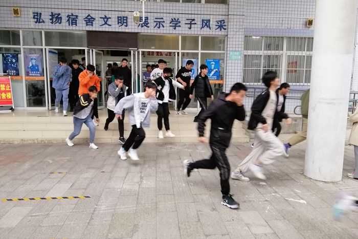 演练结束后,王国武作了活动总结讲话。他要求,各职能部门要加强协调配合,进一步优化应急疏散演练方案, 更好地发挥应急疏散演练的作用;要着力提高学生的自我防护和安全意识,在应急疏散时要快速离开宿舍,做好自我安全防护;要严格执行学生宿舍“六个严禁”,加大对学生宿舍安全隐患的查处力度,确保学生的生命财产安全,维护校园和谐稳定。